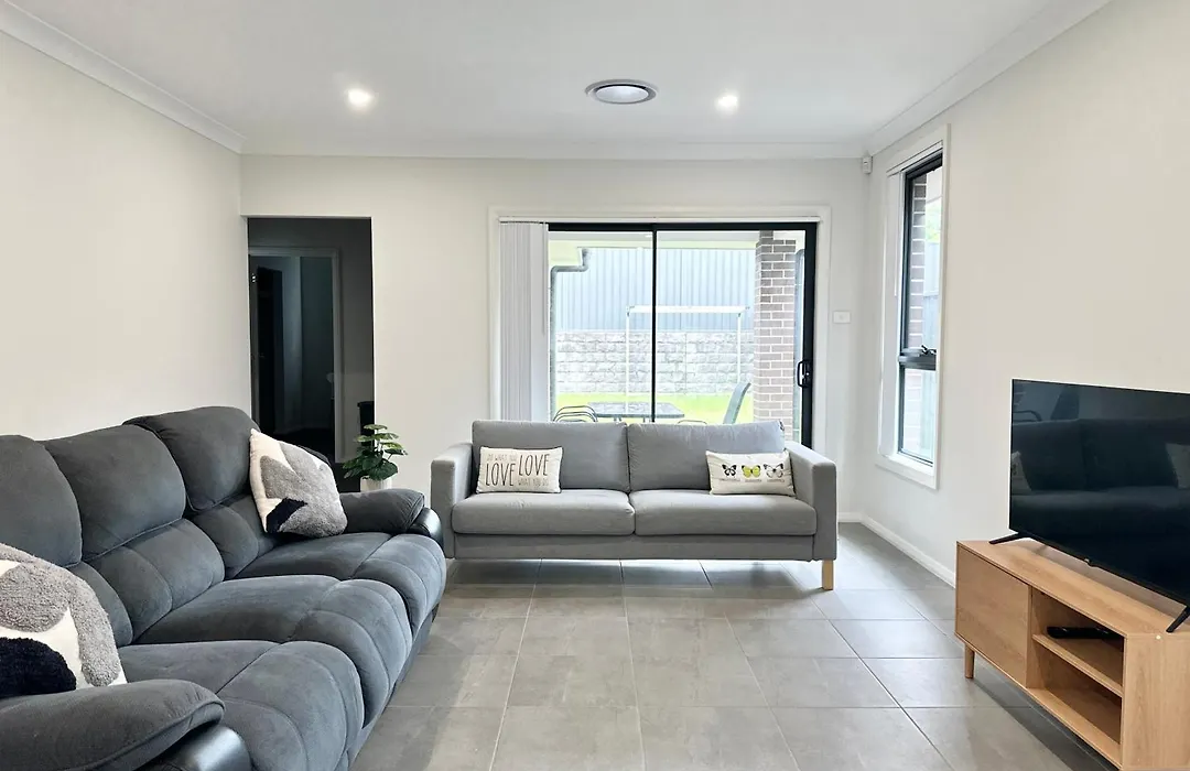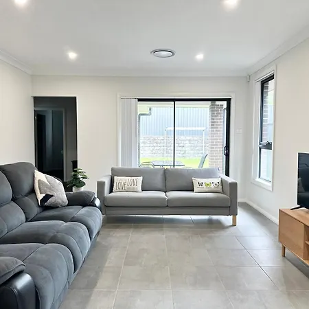 Die 2-Zimmer- Convenient And Peaceful 4Br New House In Gregory Hills verfügt über eine Terrasse mit Blick auf den Garten und ist 45 Autominuten vom Flughafen Sydney entfernt gelegen.